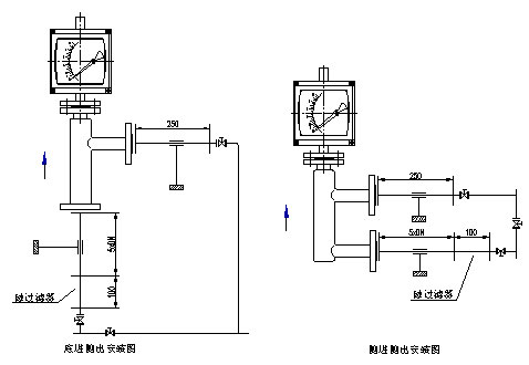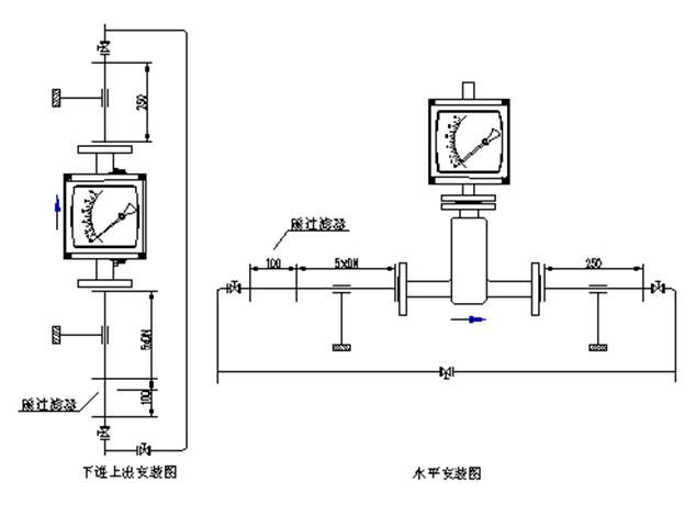 | 流量计垂直安装,流量计中心线与铅垂线的夹角不超过5°,在流量计的上游须保证五倍公称通径的入口直管段,下游保证250mm出口直管段。如果介质中含有固体杂质,应在流量计上游加装过滤器;如果介质中含有铁磁性物质,应在流量计的上游安装磁过滤器。为了便于维护和清洗且不影响生产,建议安装旁通管路。为了避免由于管道引起的流量计变形,安装法兰必须与仪表同轴并且相互平行,并适当地支撑管道以避免管道振动和减小流量计的轴向负荷,测量系统中控制阀应安装在流量计的下游。用于测量气体时,应保证管道压力不小于5倍流量计的压力损失,以使浮子稳定工作。 |